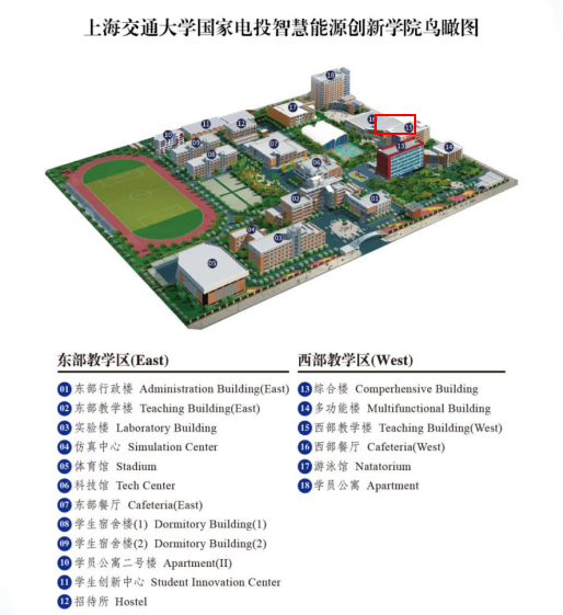3.请各位考生于复试当天按要求提前到达司机社 相应复试地点(楼宇位置图见下,或可参考//map.sjshevip.com/中所在定位),食宿自理;复试期间考生进校,凭本人初试准考证、身份证原件和学院复试短信进出校区。