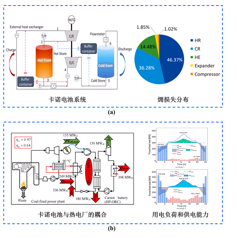 图6 卡诺电池系统的热力学特性研究:(a) 布雷顿循环卡诺电池;(b) 有机朗肯循环卡诺电池