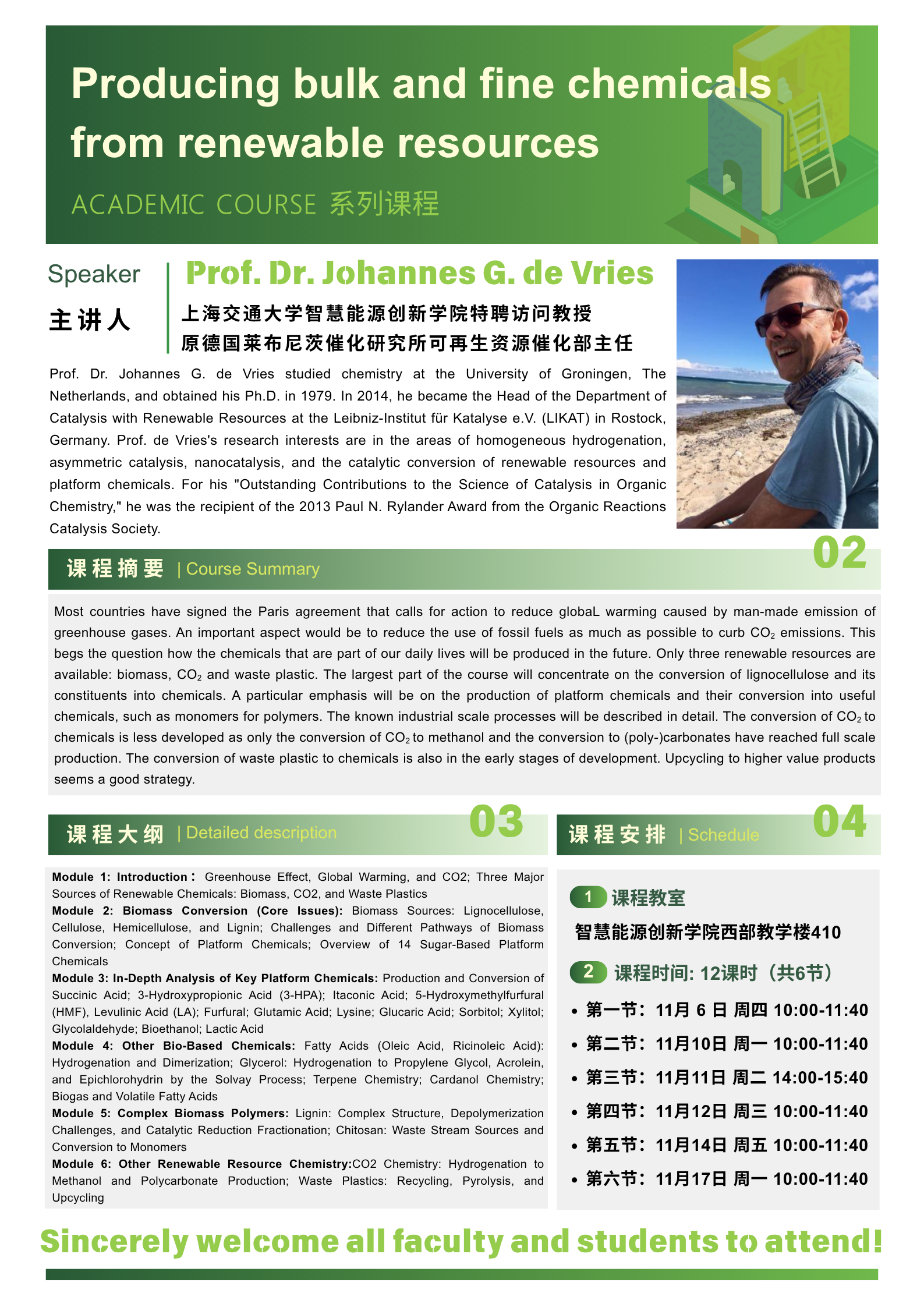 课程预告|Producing bulk and fine chemicals from renewable resources