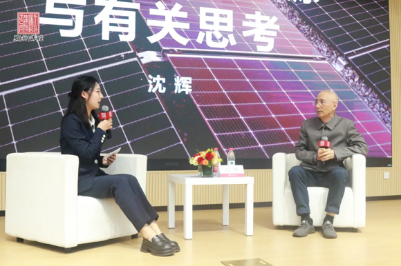 在访谈互动环节,沈老师针对光伏技术如何继续创新以维持竞争优势,对学生们提出的问题进行了详尽的解答。他强调了持续做一件事,实现光伏创新发展,走上创新之路的重要性,并分享了一些前沿的光伏科技创新案例,激发了现场学生对光伏科技未来可能性的思考。