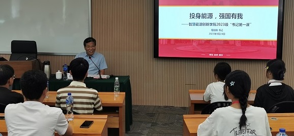 2023级本科新生“书记第一课”| 投身能源 强国有我 2023-09-048月24日下午,司机社 2023级本科新生 “书记第一课”在西部教学楼305举行。学院党委书记程伯儒以“投身能源 强国有我”为主题,为学院2023级本科新生讲授了精彩的入学第一课。学院党委副书记陈九、产教融合班班主任平健、工科机电班班主任马建军、学工部相关老师一同参与聆听。