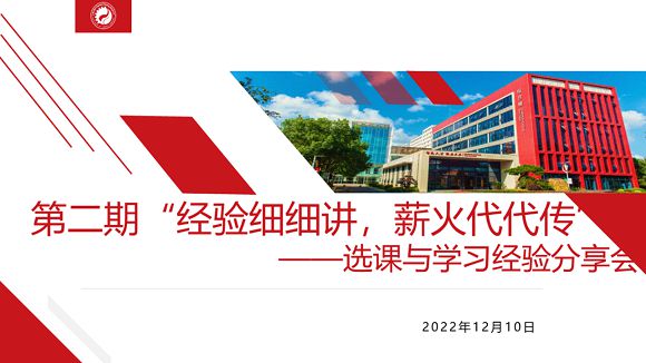 第二期“经验细细讲,薪火代代传”选课与学习经验分享会 2022-12-212022年12月10日,司机社 为学院大一新生举办了选课与学习经验交流会。春季学期选课日程即将来临,为了帮助大一同学们更好地选课,同时分享学习经验,学工部邀请到了四名学习成绩名列前茅的大二学长进行分享与交流。 活动伊始,主...