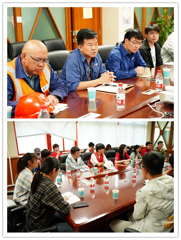 参观结束后,实践团成员和水电站的员工以及在水电站实习的学院学生一起开展座谈交流会,龙羊峡水电站技术人员详细介绍了水电站的基本情况和日常工作内容。龙羊峡水电站采用“水光互补”的模式,水电站根据总的发电任务和光伏实时发电量调节水电,实现“削峰填谷”的效果,最终并网向外输送,确保稳定、优质、安全地供电。介绍结束后,实践团成员结合专业知识,就相关问题进行友好交流,着重探讨了数字孪生技术等在水电站智能化、无人化发展中的应用。