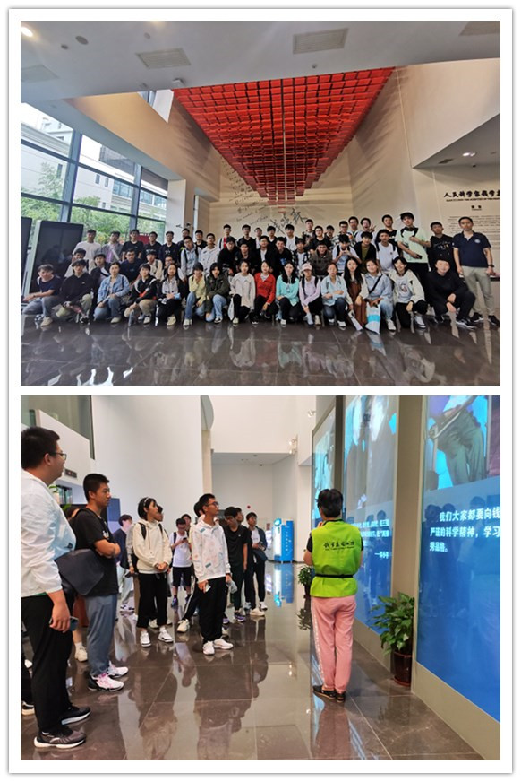 到达钱学森图书馆后,同学们首先集体合影留念,然后分成两队按不同路线参观展厅。在图书馆讲解员声情并茂地讲解下,同学们参观了以钱学森学长对中国导弹航天事业历史贡献为主题的第一展厅,看到了宏伟的导弹东风二号;接着来到介绍钱学森学长科学理论研究成就的第二展厅,学习钱学森学长的治学严谨;最后,来到以展示科学家崇高风采的第三展厅,认识了钱学森学长殷切的爱国情怀和报国热忱。
