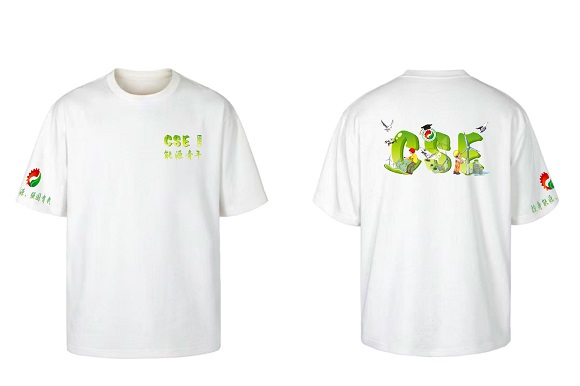 由学院学生自主设计的院衫同样细节满满。正面左胸处印有“能源青年”字样,背后的“CSE”字样当中包含院徽、光伏板、风机等元素,象征能源学子投身能源领域,大有可为。