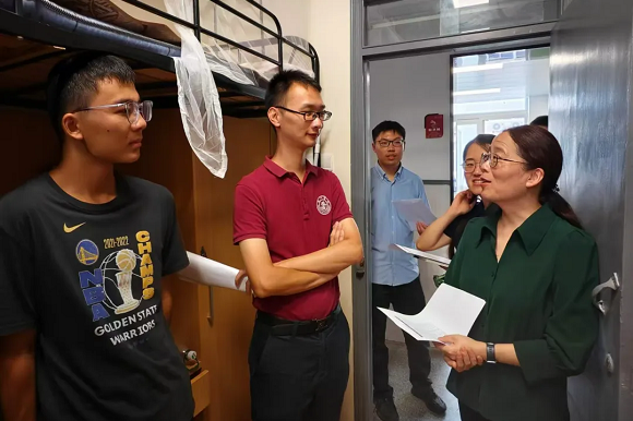 学院领导心系新生,为了解学院2024级本科新生生活情况,加强与新生的交流,提高新生对学院情况的了解,8月28日中午,学院党委副书记(主持党委工作)朱晓红,党委副书记陈九,学工部主任陈帅,新生班主任李亦言、宋美琪,新生思政秦浩一同前往学院新生宿舍走访。学院领导、老师们详细了解了新生的住宿条件、生活习惯,就学校日常学习生活与同学们进行交流,叮嘱同学们学习上不要懈怠,努力学好专业知识,争取为国家能源事业的发展做出贡献。
