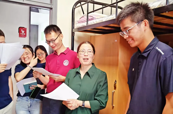 在繁忙的迎新过程中,学院党委副书记陈九老师亲临现场,亲切慰问新生和家长。他穿梭于人群中,与新生和家长交流,询问入学情况和所需帮助。让新生们体会到了来自学院的关怀与温暖。