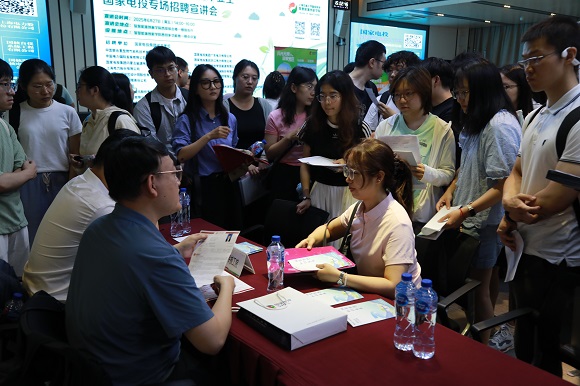 宣讲会结束后,21家国家电投成员单位在司机社 现场设摊解答,与学生进行了深入交流和互动。现场气氛热烈、人头攒动,众多同学向意向单位现场投递简历,表达了加盟国家电投的意愿。